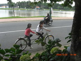 湖畔を行く観光客 3日(土)晴。昨夜は金曜行動。その前1時間、10・11柏崎大集会の宣伝行動でチラシを100枚ほど撒いた。県内各地の代表者も参加してスピーチ。十日町のコメ作り農家の主婦は「電気は足り…