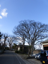 西川沿いの立派な樫の木