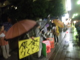 雨の中のデモ集会