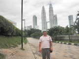 ツインタワーを背に