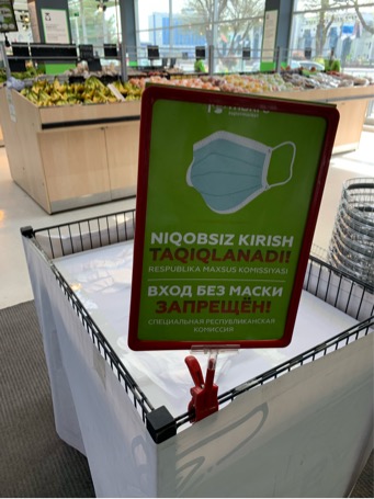 今日久しぶりにスーパーに行きました。(私は普段はバザールで買い物してます)買い物カートを手にしようとしたら、「手袋して!」と注意を受けましたなるほど。手袋しないとダメになったのね。ウズベキスタンは野…