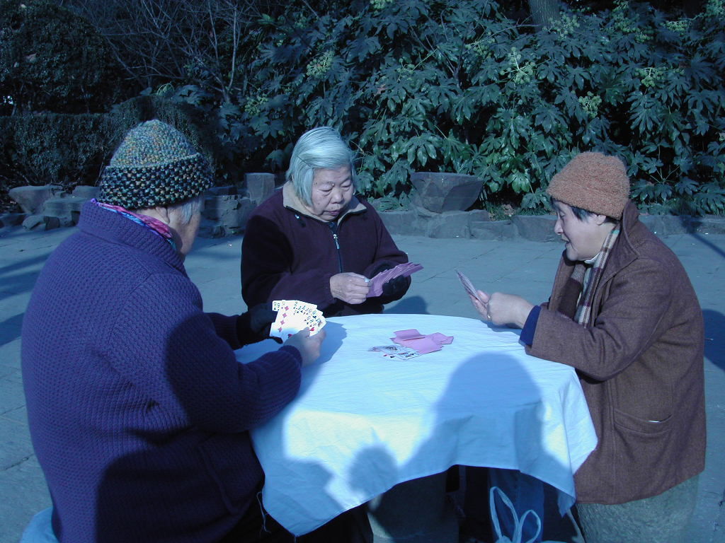 トランプに興じる老婦人