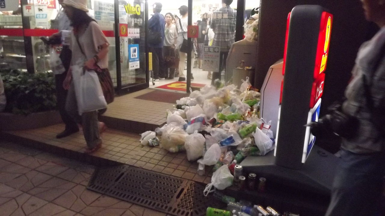 コンビニ前のごみの山
