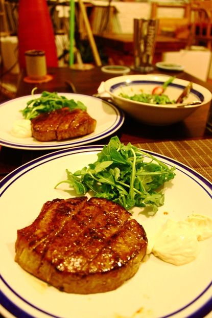 サーロインステーキには、グリークヨーグルトの酸味とマスタード風味の