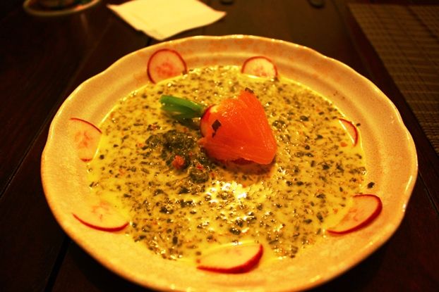 スペシャルサラダ、ホウレンソウとレッドペッパーのクリーミースープに