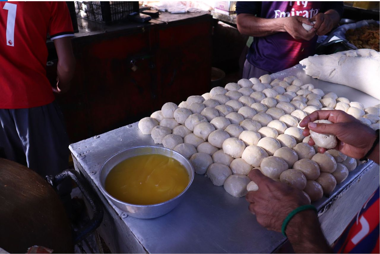 (ナン屋の店先。一つ一つの大きさが同じぐらいなのが、熟練の技を感じさせる。撮影:筆者)
