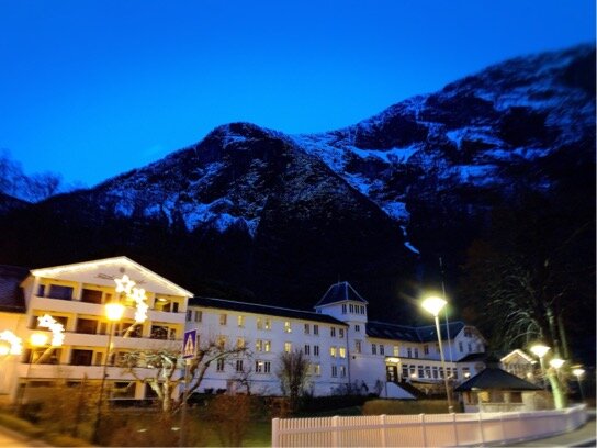 フロム鉄道駅の目の前にあり、吹き抜けのレストランがとても素敵。