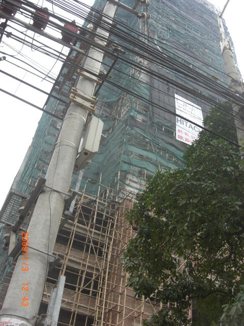 ビル建設の足場は竹