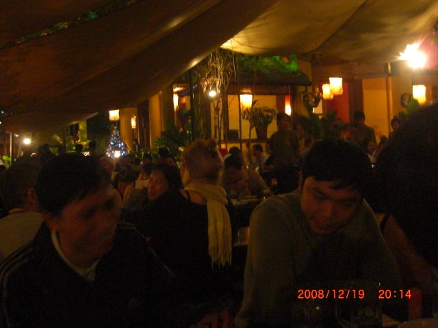 夜のレストランも満員