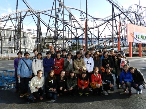 他に並んでいる寮生も呼び戻して、バスの前で全体写真を撮った。