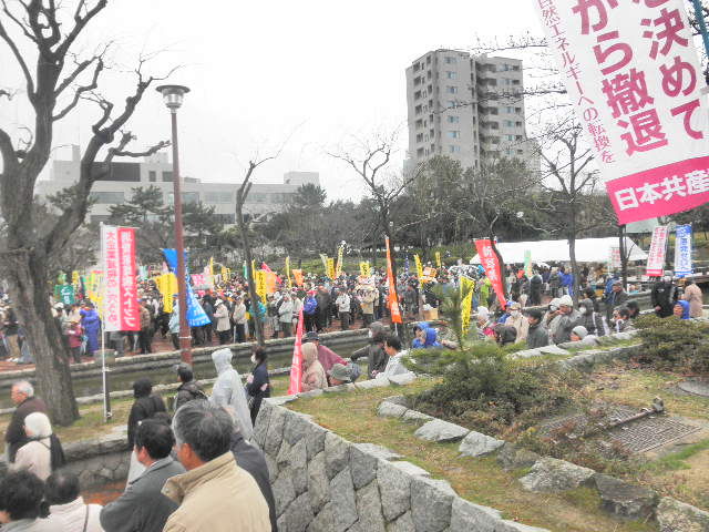 1日(日)4月に入ったというのに、今朝まだ雪がチラついた。今日は午後から新潟県民大集会に参加。生憎の天気でみぞれ交じり。それでも1000名近い人々が全県から結集した。参加者で「若者が少ないねえ、彼らは世の中がどうなったら怒るのかねえ」とのつぶやき。
