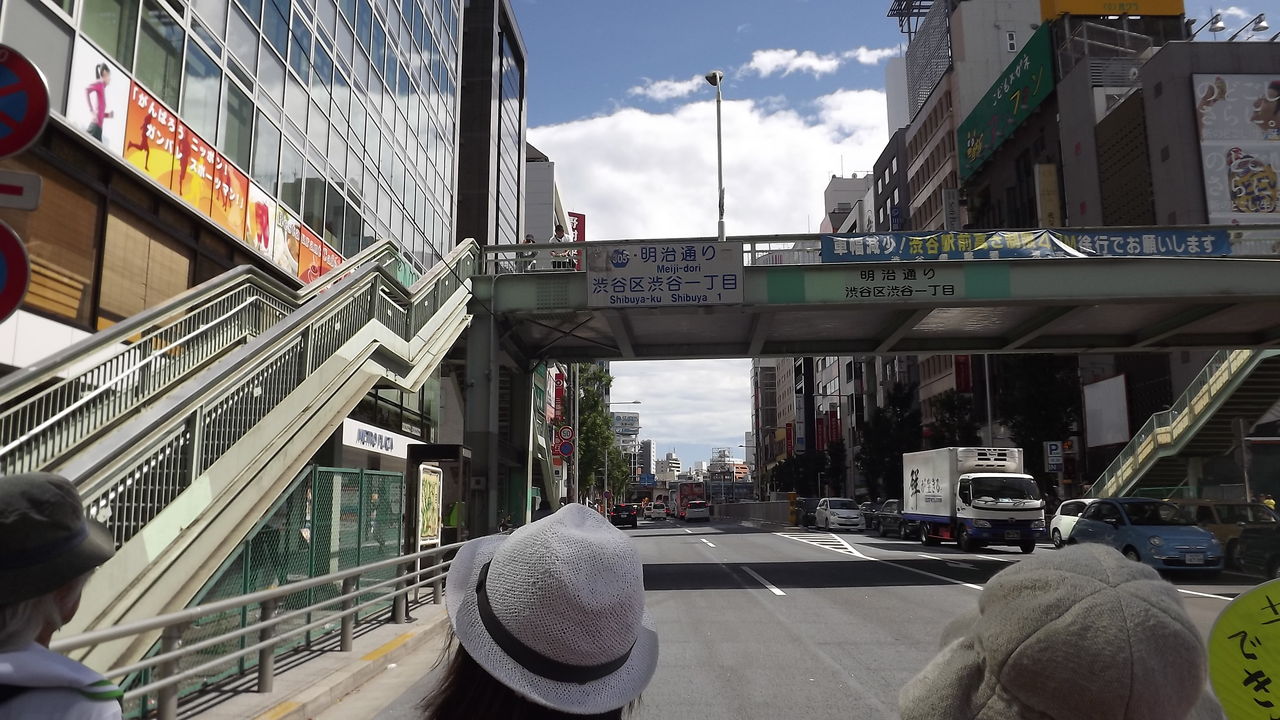 明治通りを先頭で歩く