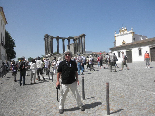ローマ遺跡をバックに