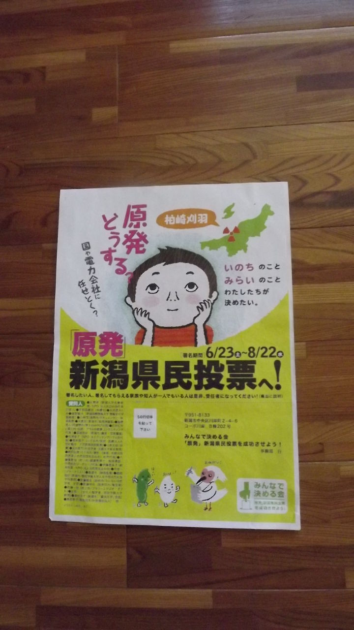 昨夜は市の中心部で「これからの新潟をおもしろくする」会議に参加してきた。主催は原発県民投票・みんなで決める会」である。北は村上から南は津南町や上越市まで20数名が集った。過半数は初対面で、その他の人達もこの県民投票運動を通しての面識である。