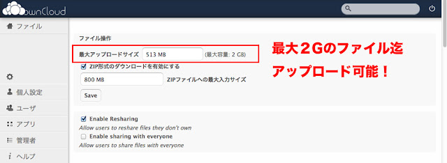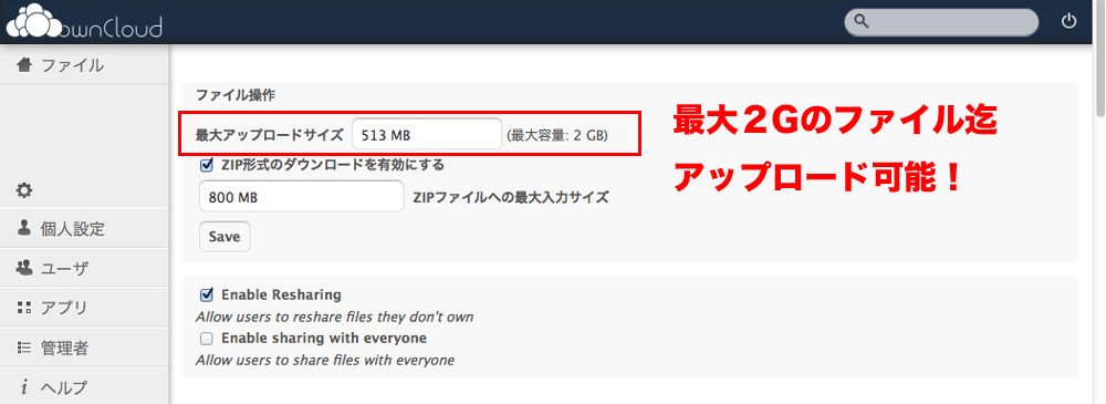 アップロードは2Gまで設定可能!大きなファイルも簡単に移動ができます。