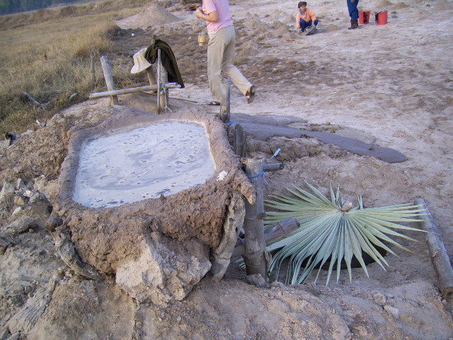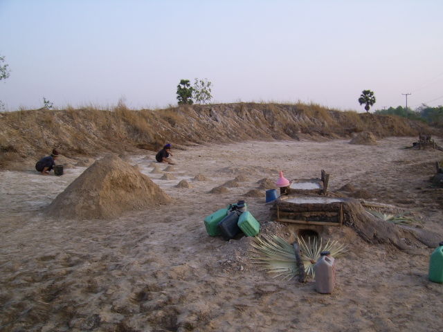 塩田から塩を採集