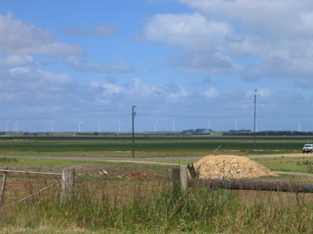 遠くに風力発電が