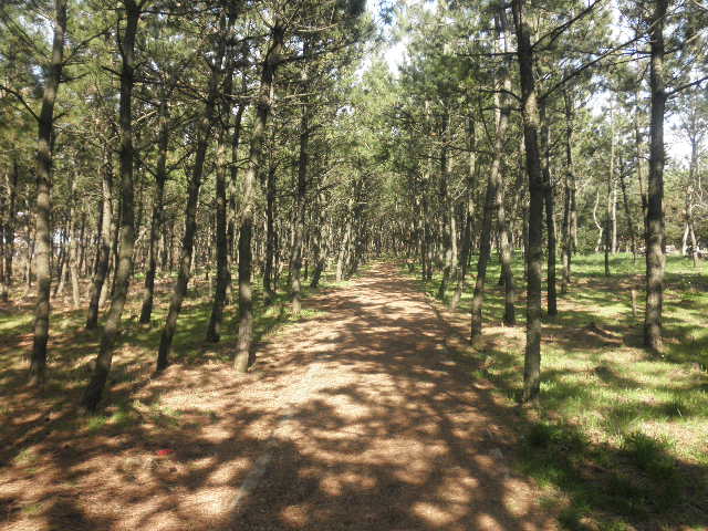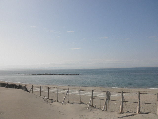 午後から海岸沿いの松林を歩いた。片道40分歩いたところでクロマツの林は終わり。気温が18度もある暑い日だったが松林のトンネルで日差しは遮られ、なかなか快適だった。10数人の人と出会うほど人気の遊歩道のようだ。海岸に出ると佐渡がくっきり見えた。
