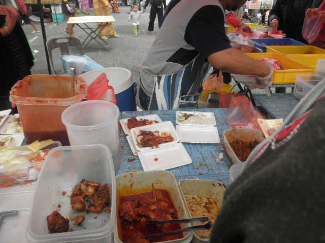 25日(日)快晴。朝市の賑わいは大変なものだ。もう半年近くも毎週日曜日に出ているのに、まだ新しい発見があり、つい1時間はいてしまう。今朝はソイのような魚とネギ、豆乳を買っただけ。ネギを適当に取り上げて、いくら?2RM? 1でしょ!じゃあ1で決まり、といった具合。