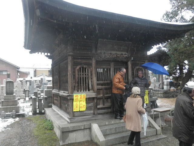 新発田は雪だった。10㎡もない小さなお堂なのだが、そこに木像がぎっしりと並んでいる。作者がはっきりしないが、唯一生き残りの寺坂吉衛門説もあるのだとか。天井や壁には相馬御風、会津八一、大倉喜八郎、果ては右翼玄洋社の頭山満などの書や絵画もはめ込まれていた。