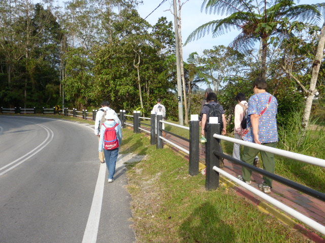23日(木)晴れ。毎週木、土の2日間、朝6時45分、町はずれの駐車場に集まって、隣町のブリンチャンまで5キロの道のりを歩く「朝粥トレッキング」がある。ホテル在住者は張り紙を見て参加するらしい。今朝は19名が集まり、45分丁度になると出発する。