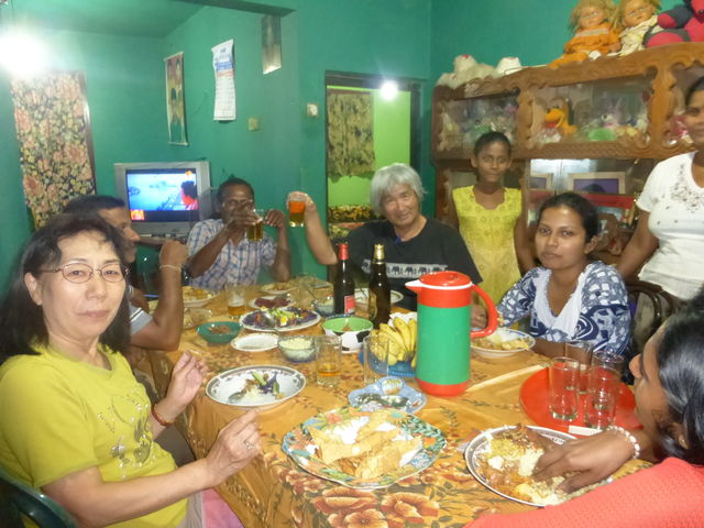 この家族は同じ看護師を目指すPさんの友人の家で、父親は56歳で三輪タクシーの運転手、母親は私の長女と同じ年だった。子どもが3人。親戚も集まって、みんな正装して迎えてくれた。私が買って持参したビールで乾杯。家族の紹介などよもやま話に花が咲いた。