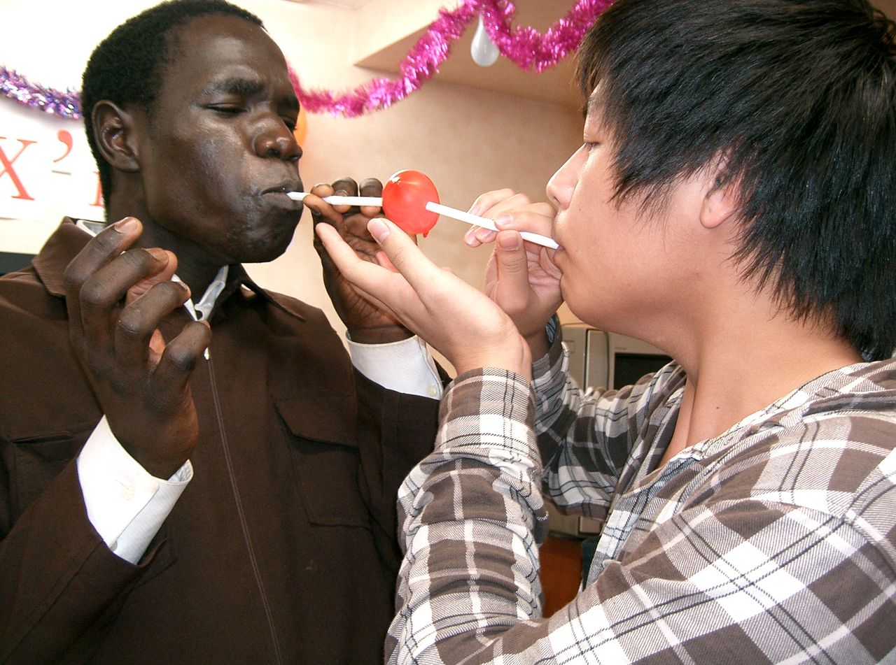 ・ストローで吸っての風船渡し
