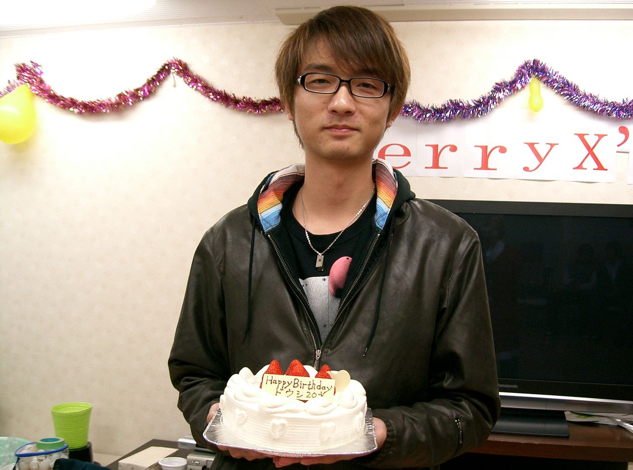 中国の留学生D君がケーキを持ってきた