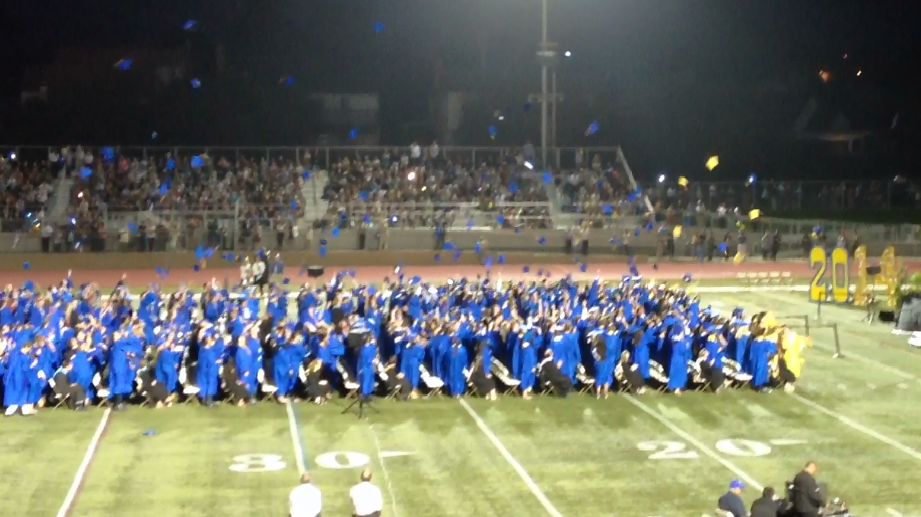 順番に名前を読み上げられて、Diploma(卒業証書) 壇上に上がります。息子の番が終わっても永遠と列は続きます(笑)