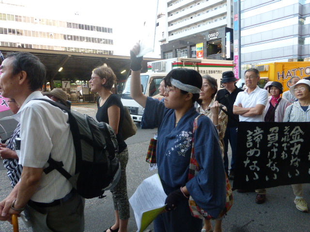 駅前をデモ行進