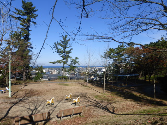 中央公園から日本海を望む