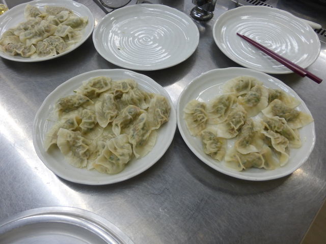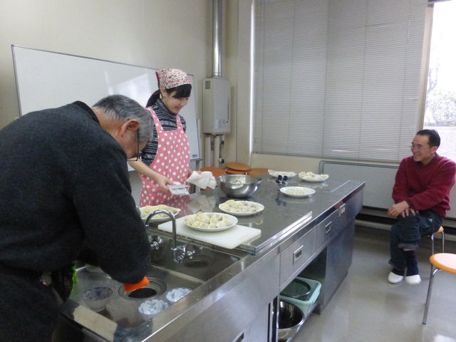 経験者もおり、みなさん手際よく野菜刻みをやってくれたので、2時間の予定が1時間で100枚の餃子が出来上がった。30枚ほどを焼き、残りは水餃子に。その後6名が加わって昼食会。みなさん美味しいと、あっという間に完食。レシピをメモって帰る人もいた。