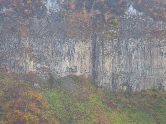 私は二次会のカラオケ途中でダウンしたが、彼らは私の部屋に集合して、1時過ぎまで飲み明かしたということだった。翌日は目の病気にご利益のある三玉不動尊にお参りしたり、秋山郷の入り口、中津川沿いの苗場山噴火で形成された柱石を囲む紅葉の絶景を楽しんだ。