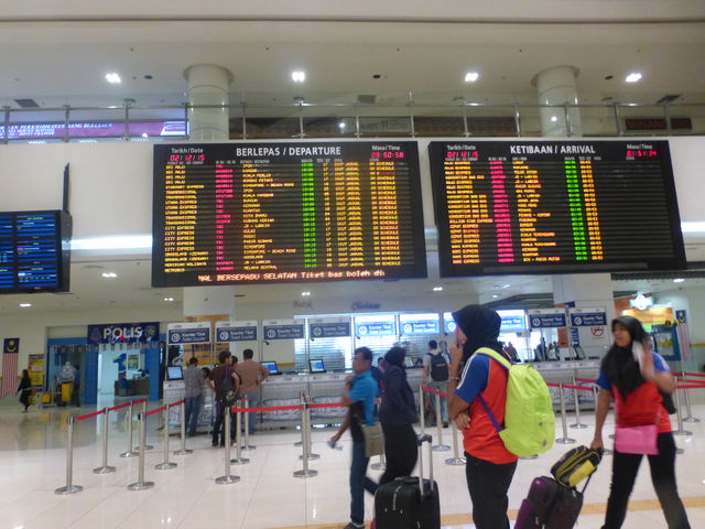 出発は6分遅れ、遅れてきた乗客が原因なのだが、運転手も時間を見ている様子はない。イポーまで高速(大型バス5RM=150 円)を降り、従来はドライブインらしきところでトイレ休憩をとるのだが、いきなりガソリンスタンドへ。給油のためではなく「トイレ」のためだ。