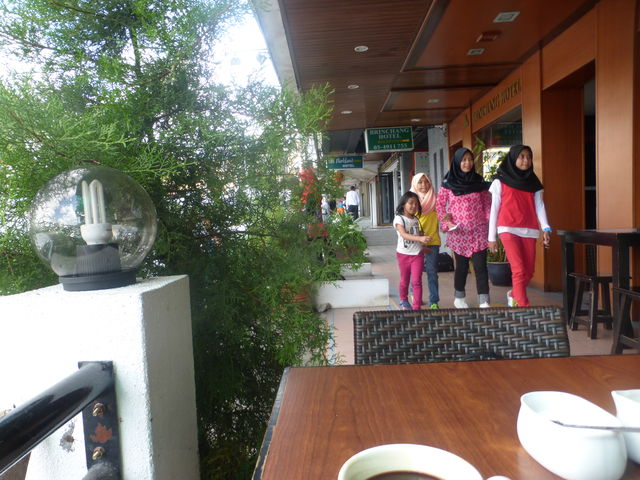 30数年前に家族で泊まったホテル そこは30数年前に家族で泊まったホテルの横でゴルフ場の正面だった。結局ブリンチャンまで一時間半の距離だった。ちょうどお昼で迷わずチキンライスの店へ。ママに顔を覚えられたようだ。折角来たのだからと、肉屋を覗いたがすでに閉店。茄子とほうれん草を買って帰る。